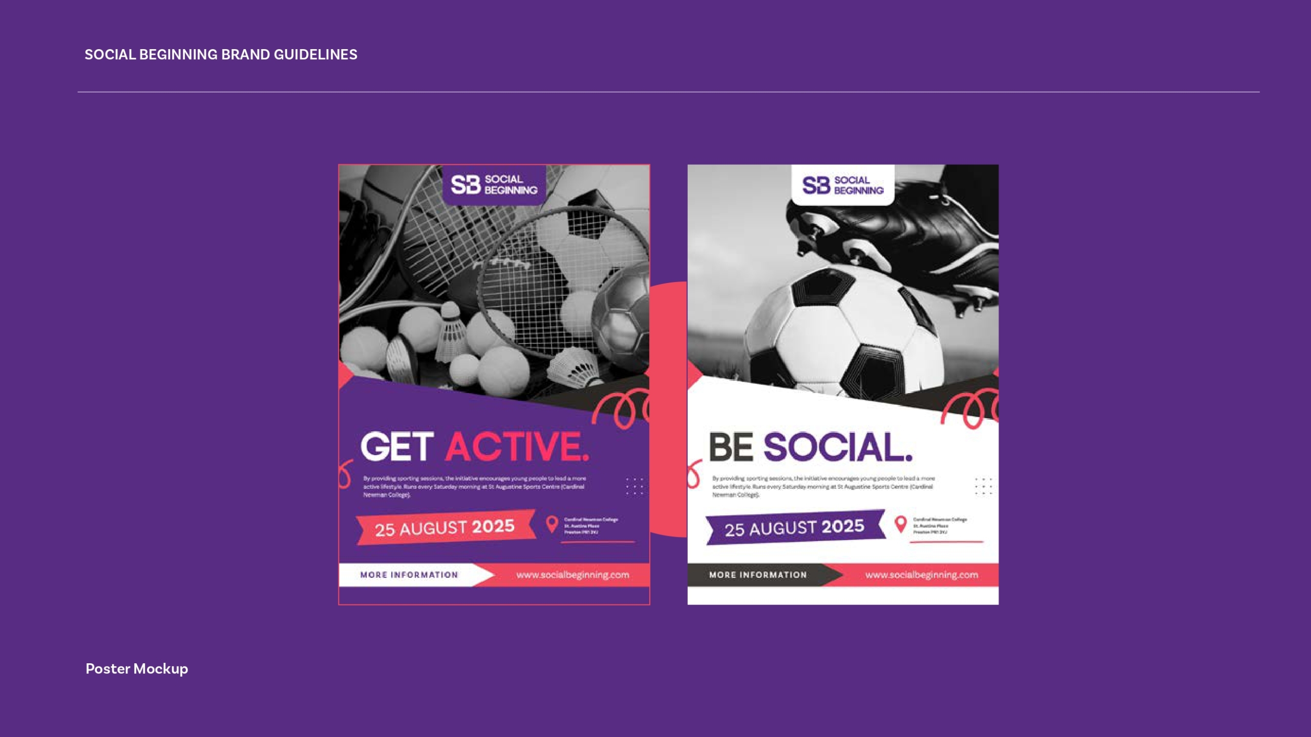 Each poster clearly lays out the key information: the sport, the age group, the time, and the price, so parents can quickly decide if the activity is right for their child. By placing the logo consistently, I ensured these local programs always feel like a trusted part of the larger Social Beginning mission.